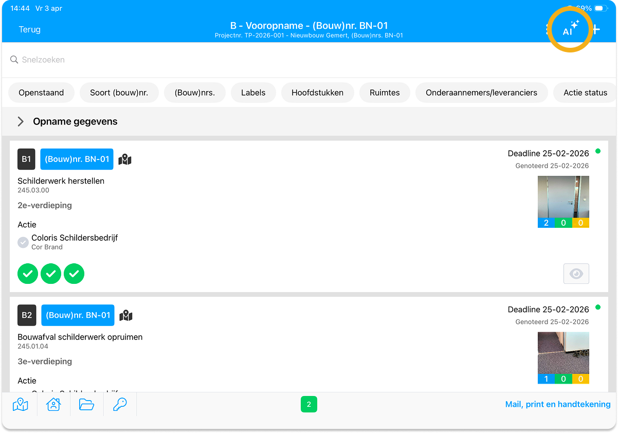 Let op: de AI functie is op dit moment alleen nog beschikbaar in de module opleveren en inspecties